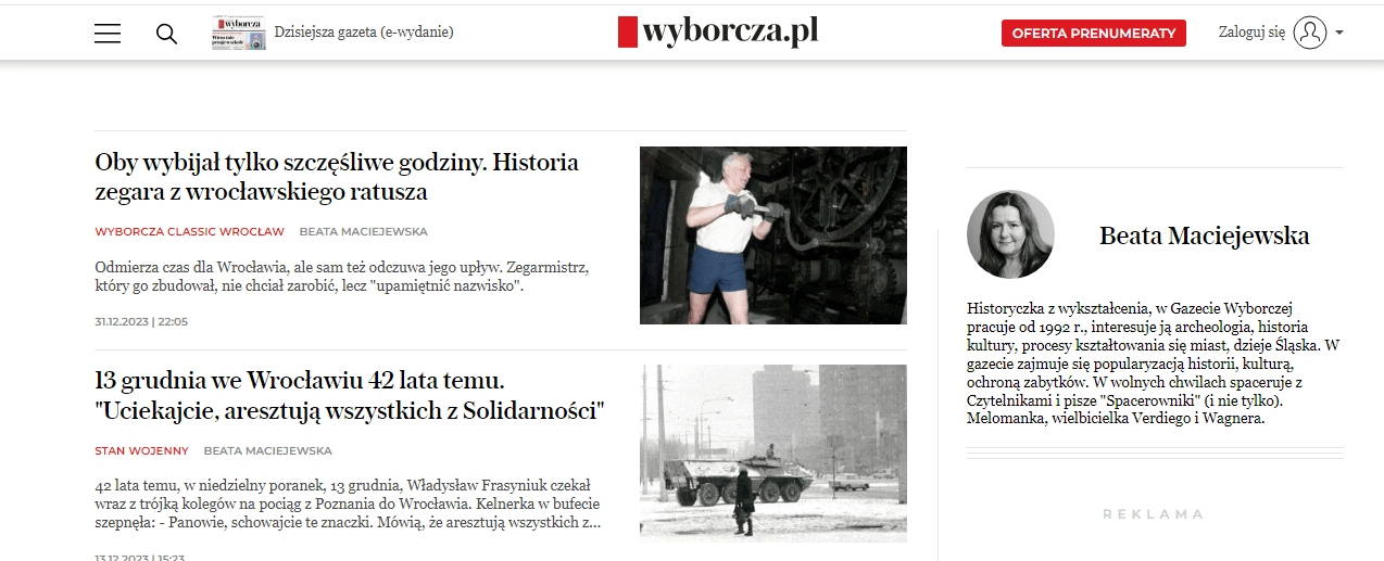 Беата Мацієвська — одна з найвидатніших журналісток із Вроцлава, та й у Польщі її ім’я досить відоме. Багаторічна праця Беати стала справжнім внеском у збереження історії та культури столиці Нижньої Сілезії. Найбільше Беата Мацієвська відома по роботі в редакції Gazety Wyborczej. Діяльність журналістки призвела до здобуття низки нагород, і вони дійсно заслужені, бо авторка впливає на свідомість суспільства через свої статті та дослідження. Більше про неї читайте в цій статті на wroclaw.one.